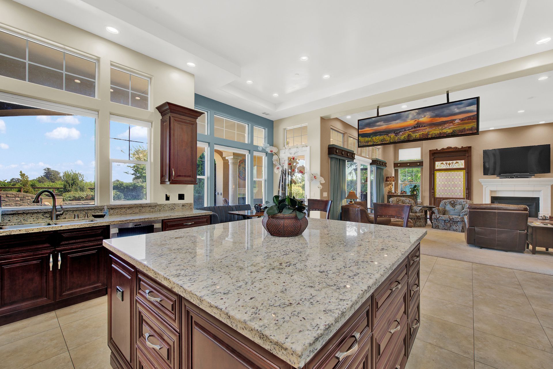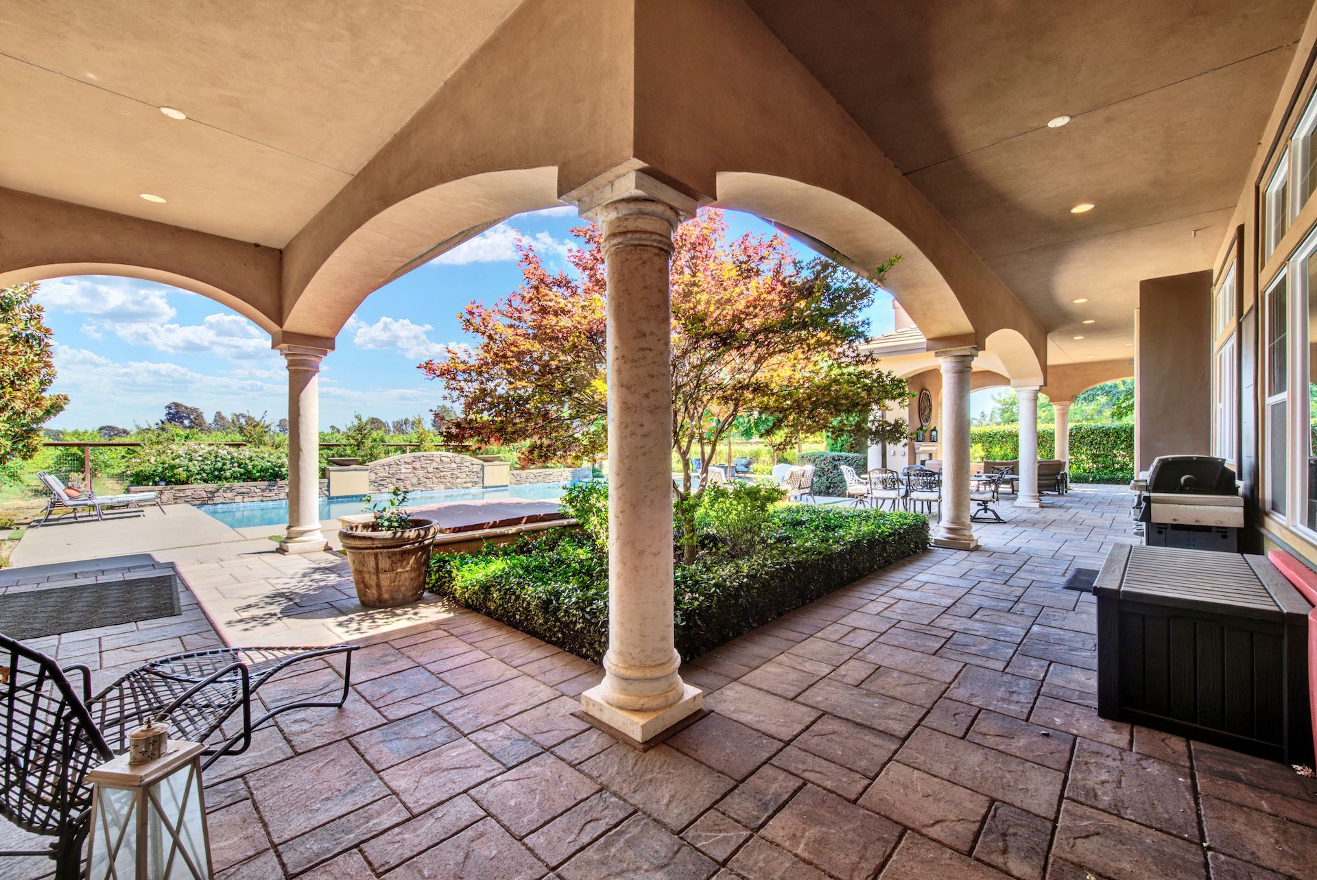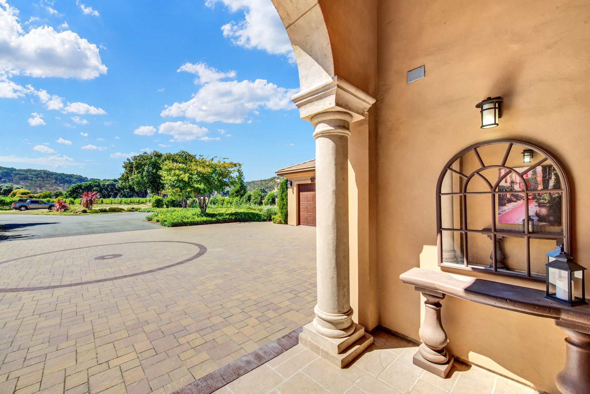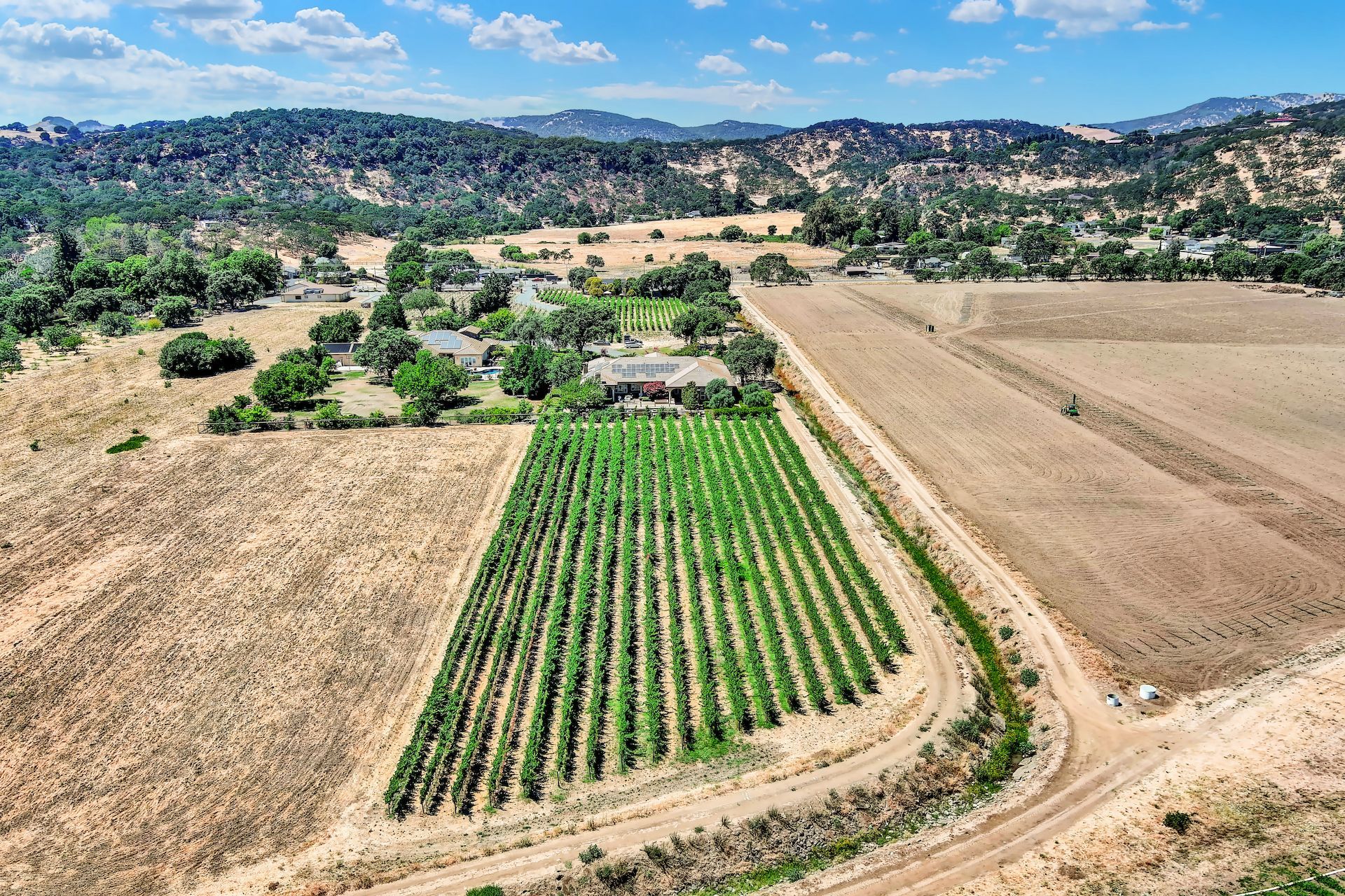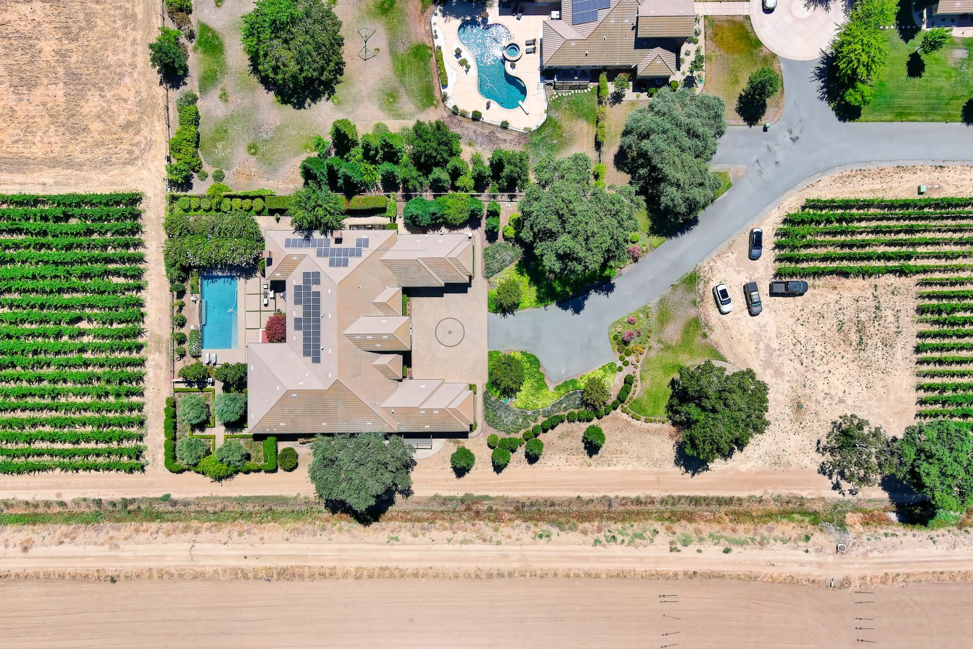 Wake up on vacation everyday on this 3.63 acre Mediterranean Villa. Surrounded by 3 acres of Cabernet grapes, beautiful olive trees and views of the surrounding hills. This home is a sprawling 6,100 single story that offers 4 bedrooms all with ensuites. The Primary bedroom is extra special overlooking both the vineyards and swimming pool, with a cozy fireplace and sitting area. The cathedral ceilings and tall windows bring in the natural light. A media/game room is perfect for indoor entertaining, while the outside swimming pool and jacuzzi make for great gatherings with friends and family. Working from home is a treat with dual working areas and views of the vineyards lining the gated entrance to the property. Invite friends for a weekend of wine tasting at Caymus Suisun, 360 Vineyards or a car show and tasting at the recently opened Bally Keal Estate. Suisun Valley is an emerging destination
