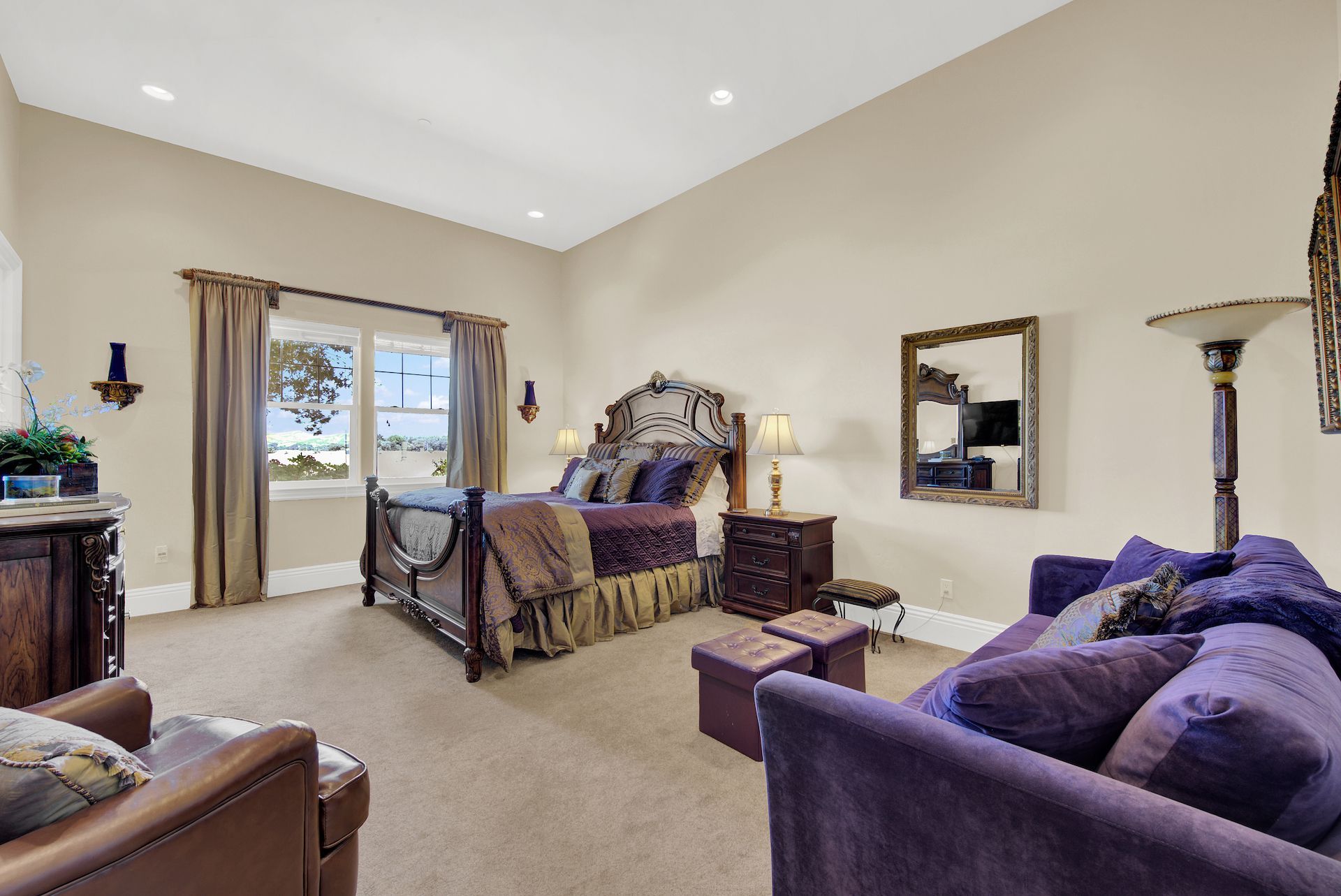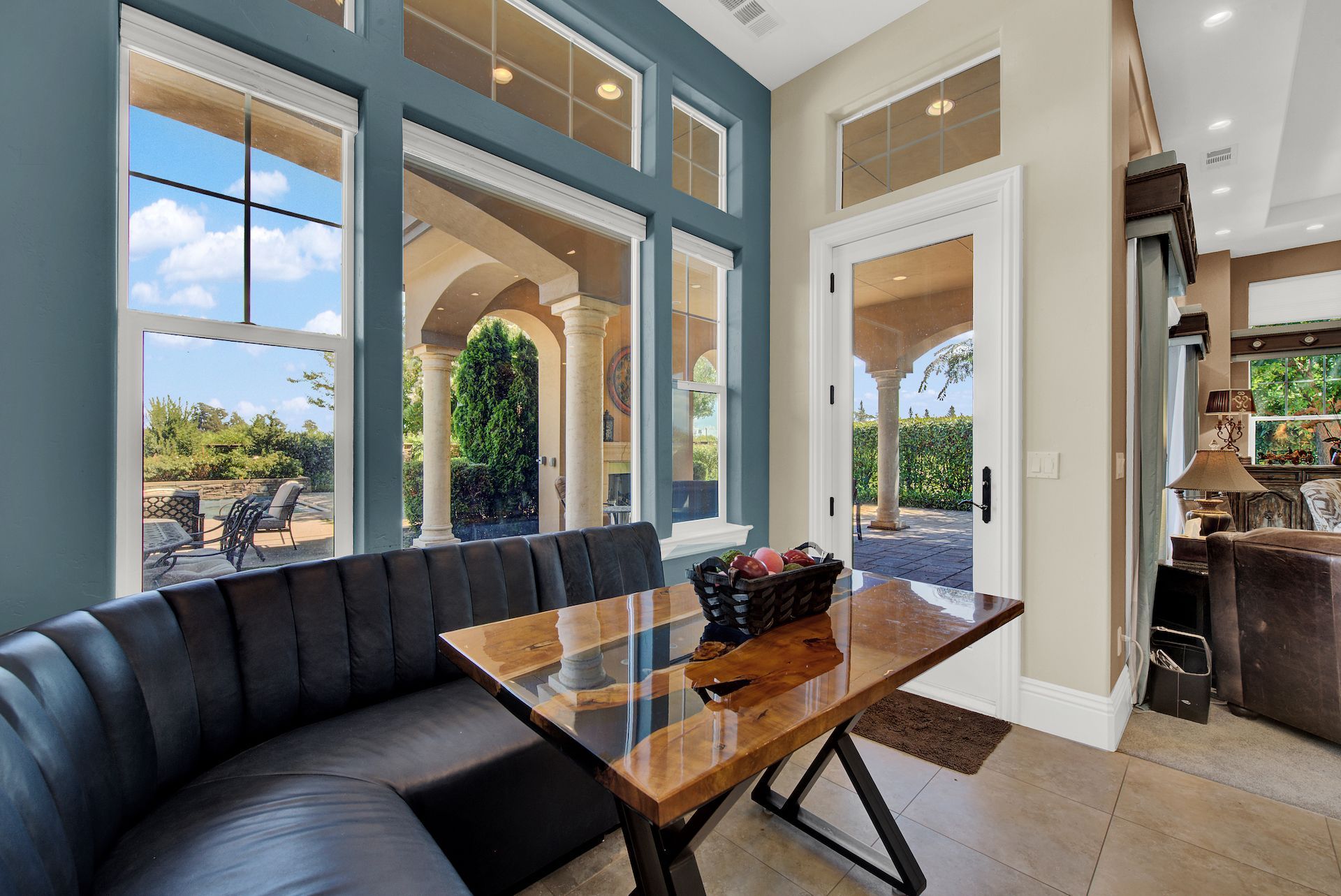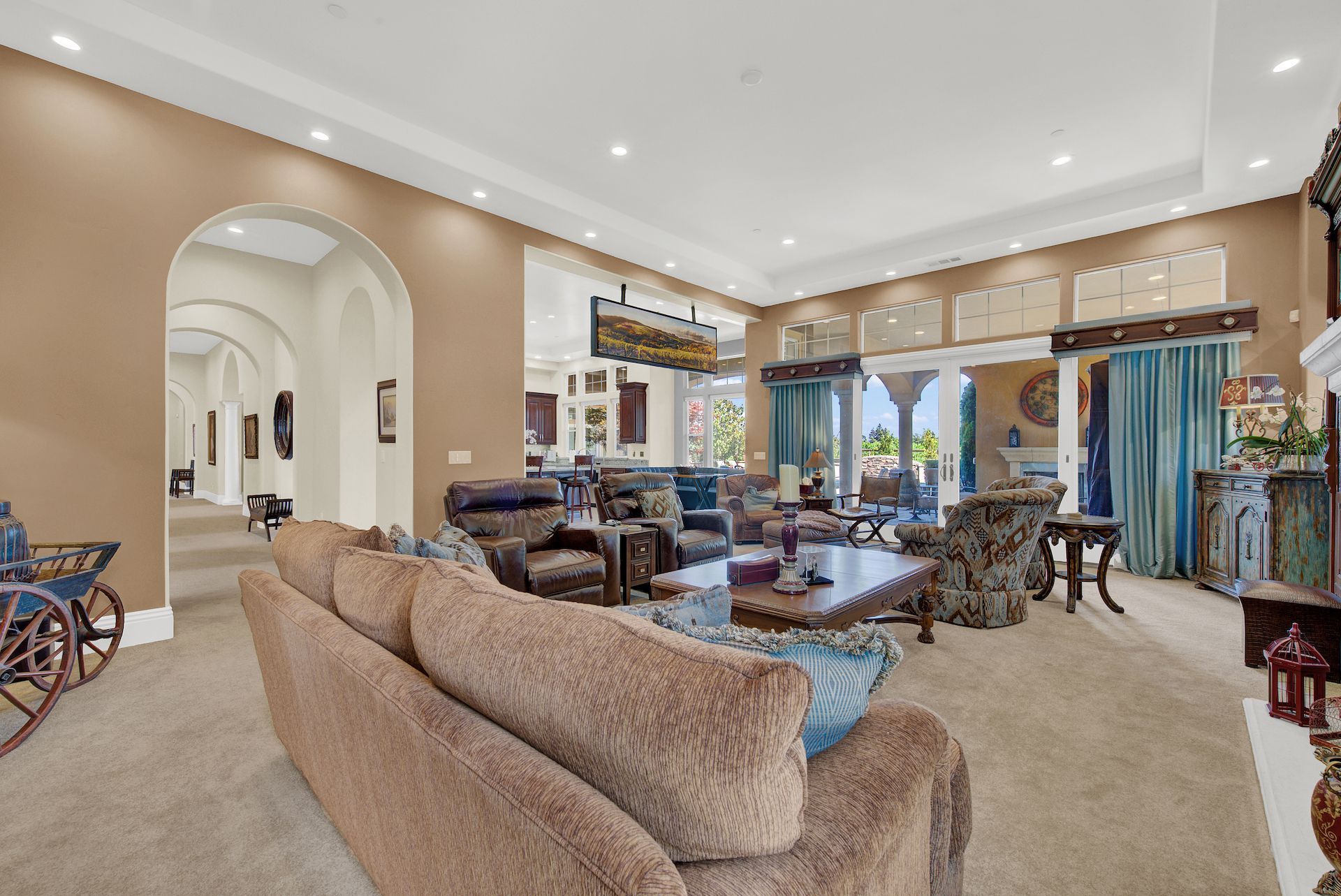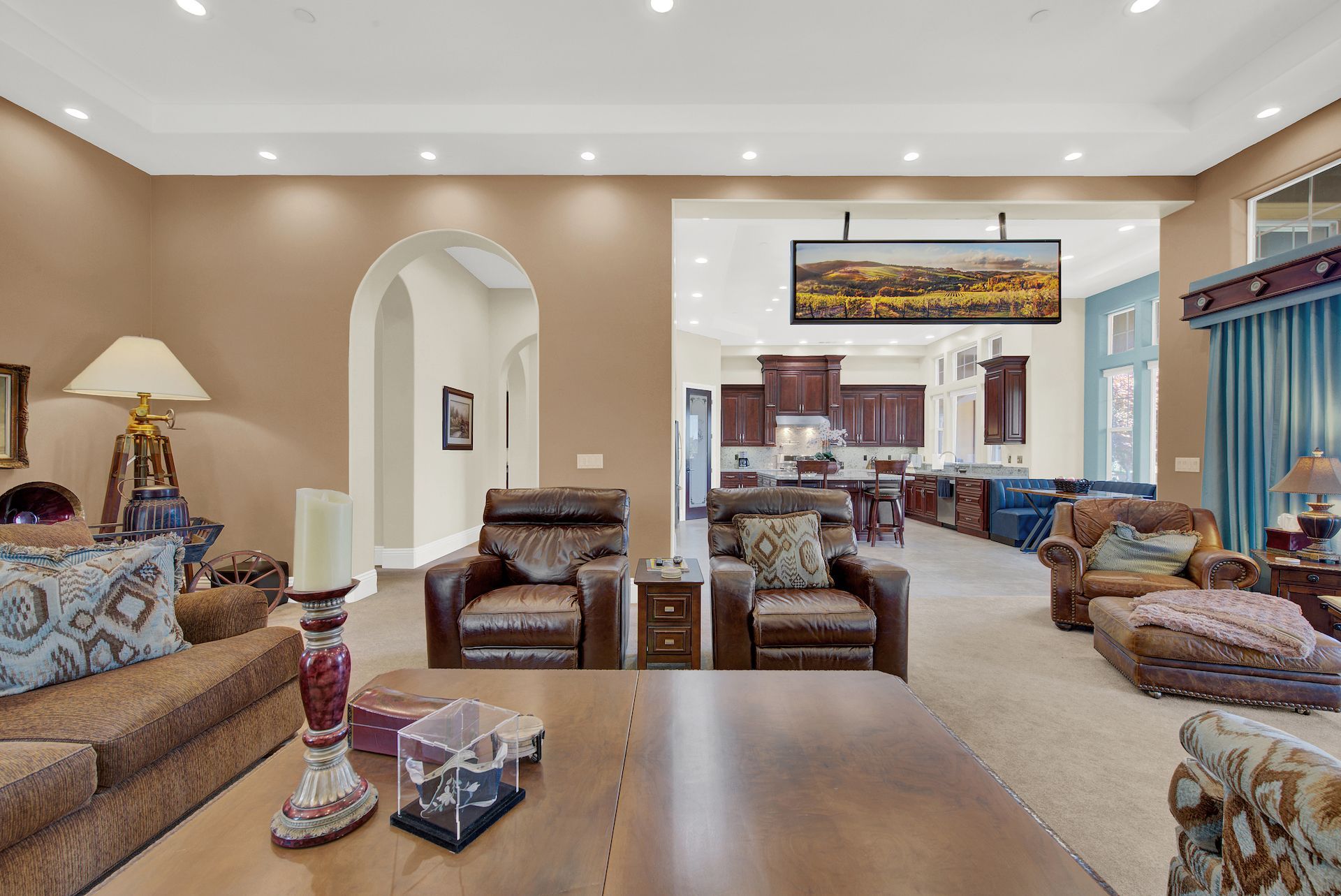 Wake up on vacation everyday on this 3.63 acre Mediterranean Villa. Surrounded by 3 acres of Cabernet grapes, beautiful olive trees and views of the surrounding hills. This home is a sprawling 6,100 single story that offers 4 bedrooms all with ensuites. The Primary bedroom is extra special overlooking both the vineyards and swimming pool, with a cozy fireplace and sitting area. The cathedral ceilings and tall windows bring in the natural light. A media/game room is perfect for indoor entertaining, while the outside swimming pool and jacuzzi make for great gatherings with friends and family. Working from home is a treat with dual working areas and views of the vineyards lining the gated entrance to the property. Invite friends for a weekend of wine tasting at Caymus Suisun, 360 Vineyards or a car show and tasting at the recently opened Bally Keal Estate. Suisun Valley is an emerging destination