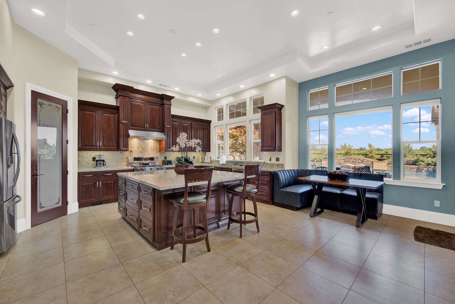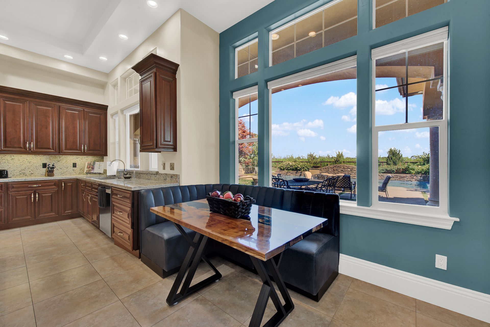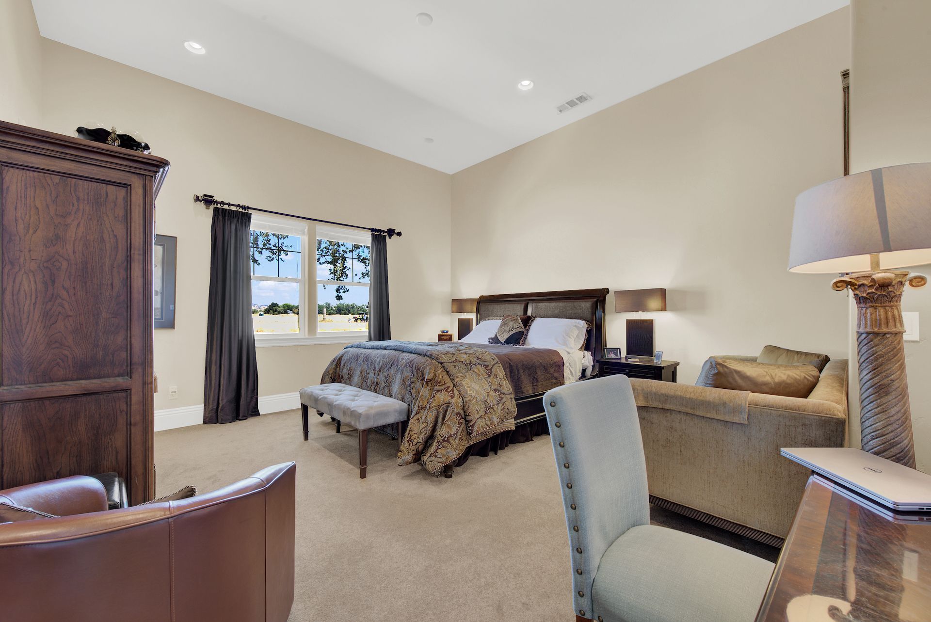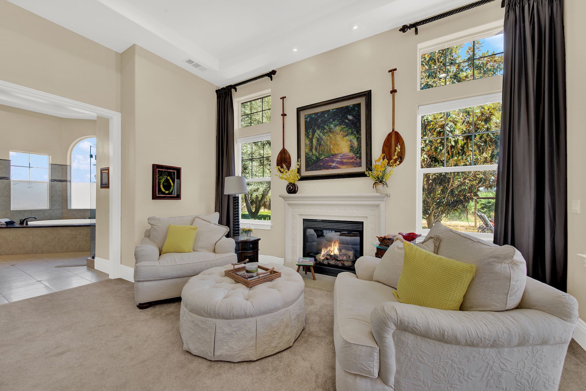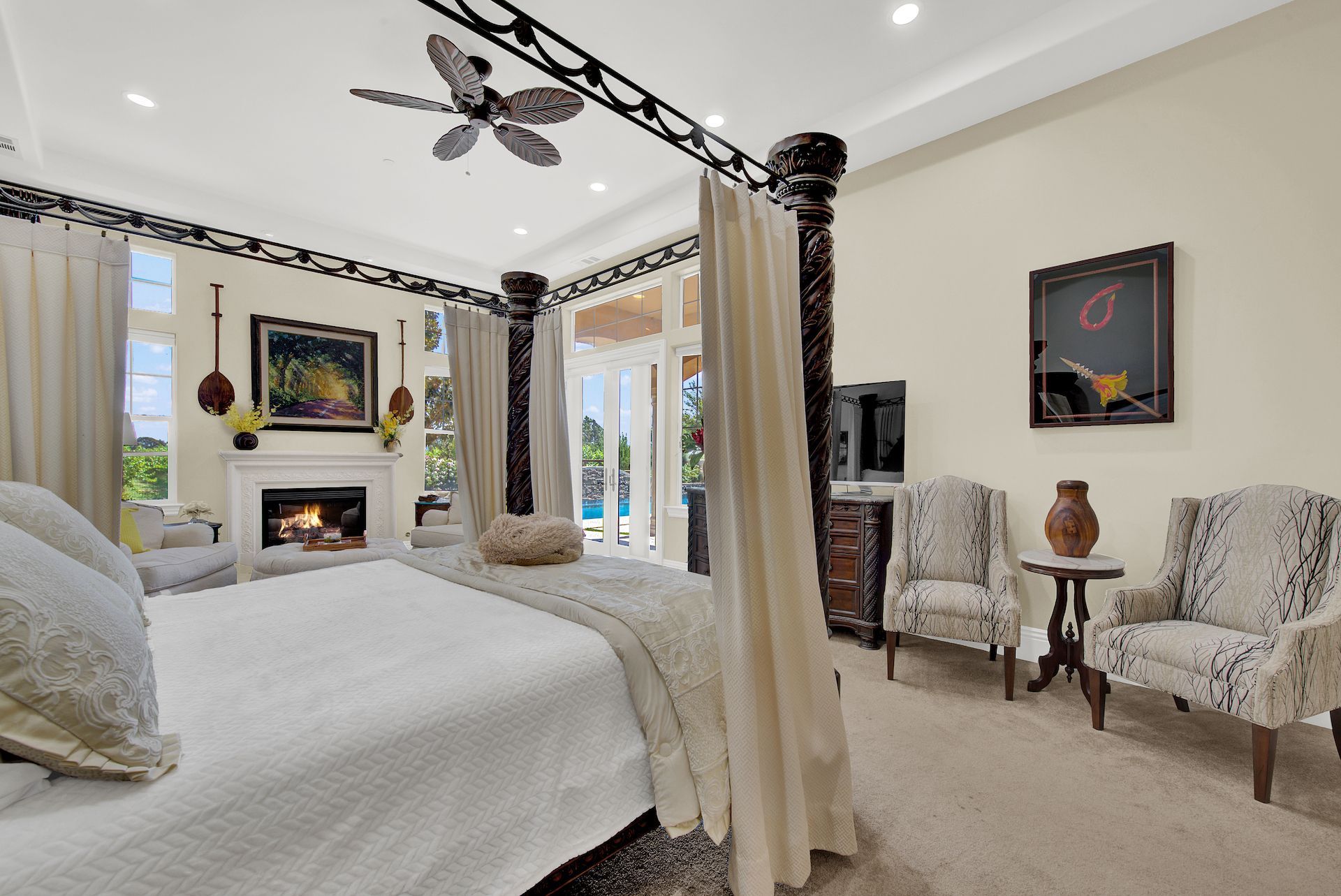 Wake up on vacation everyday on this 3.63 acre Mediterranean Villa. Surrounded by 3 acres of Cabernet grapes, beautiful olive trees and views of the surrounding hills. This home is a sprawling 6,100 single story that offers 4 bedrooms all with ensuites. The Primary bedroom is extra special overlooking both the vineyards and swimming pool, with a cozy fireplace and sitting area. The cathedral ceilings and tall windows bring in the natural light. A media/game room is perfect for indoor entertaining, while the outside swimming pool and jacuzzi make for great gatherings with friends and family. Working from home is a treat with dual working areas and views of the vineyards lining the gated entrance to the property. Invite friends for a weekend of wine tasting at Caymus Suisun, 360 Vineyards or a car show and tasting at the recently opened Bally Keal Estate. Suisun Valley is an emerging destination