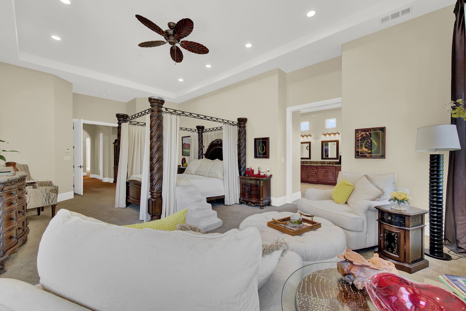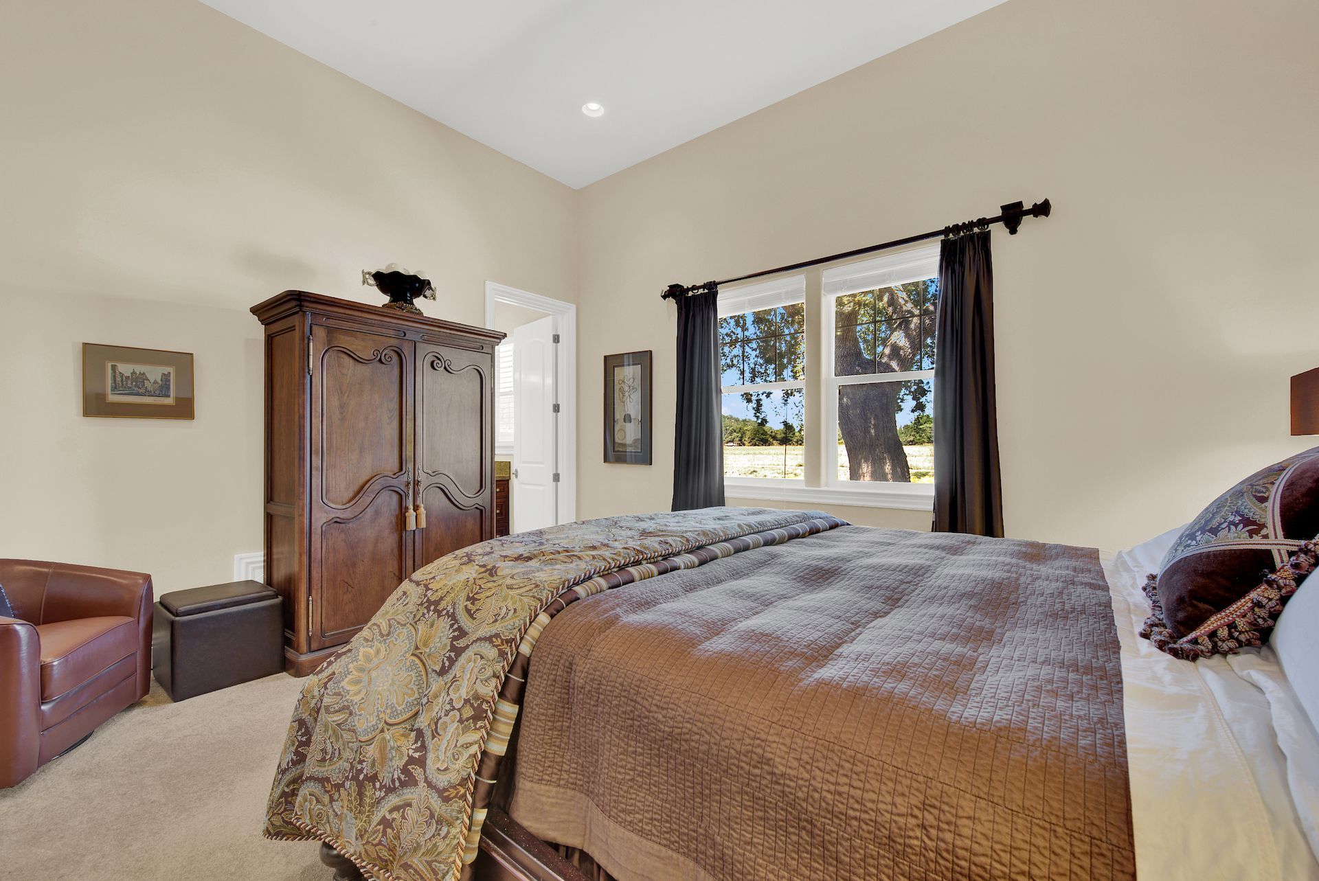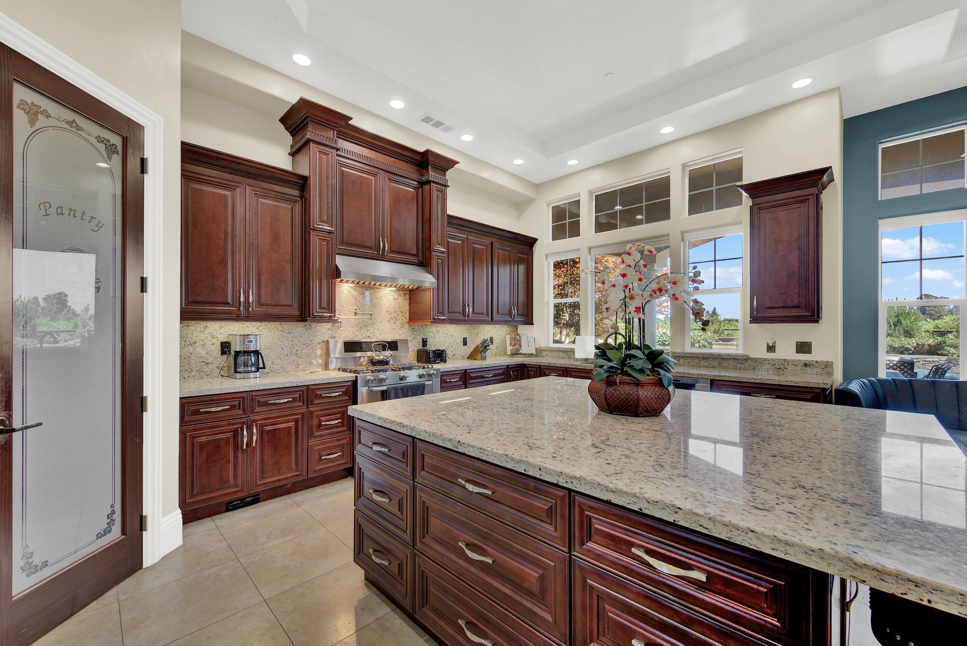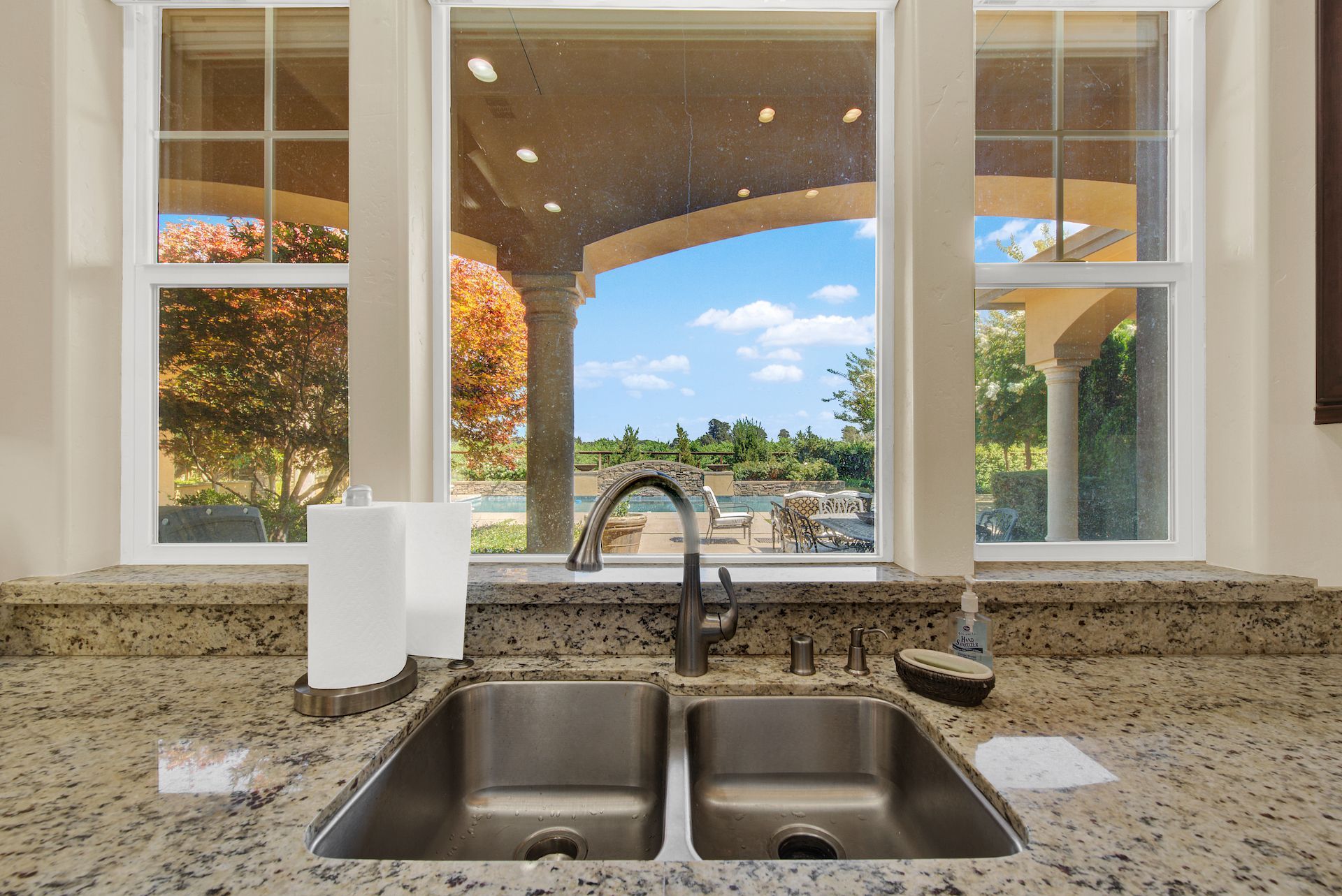 Wake up on vacation everyday on this 3.63 acre Mediterranean Villa. Surrounded by 3 acres of Cabernet grapes, beautiful olive trees and views of the surrounding hills. This home is a sprawling 6,100 single story that offers 4 bedrooms all with ensuites. The Primary bedroom is extra special overlooking both the vineyards and swimming pool, with a cozy fireplace and sitting area. The cathedral ceilings and tall windows bring in the natural light. A media/game room is perfect for indoor entertaining, while the outside swimming pool and jacuzzi make for great gatherings with friends and family. Working from home is a treat with dual working areas and views of the vineyards lining the gated entrance to the property. Invite friends for a weekend of wine tasting at Caymus Suisun, 360 Vineyards or a car show and tasting at the recently opened Bally Keal Estate. Suisun Valley is an emerging destination
