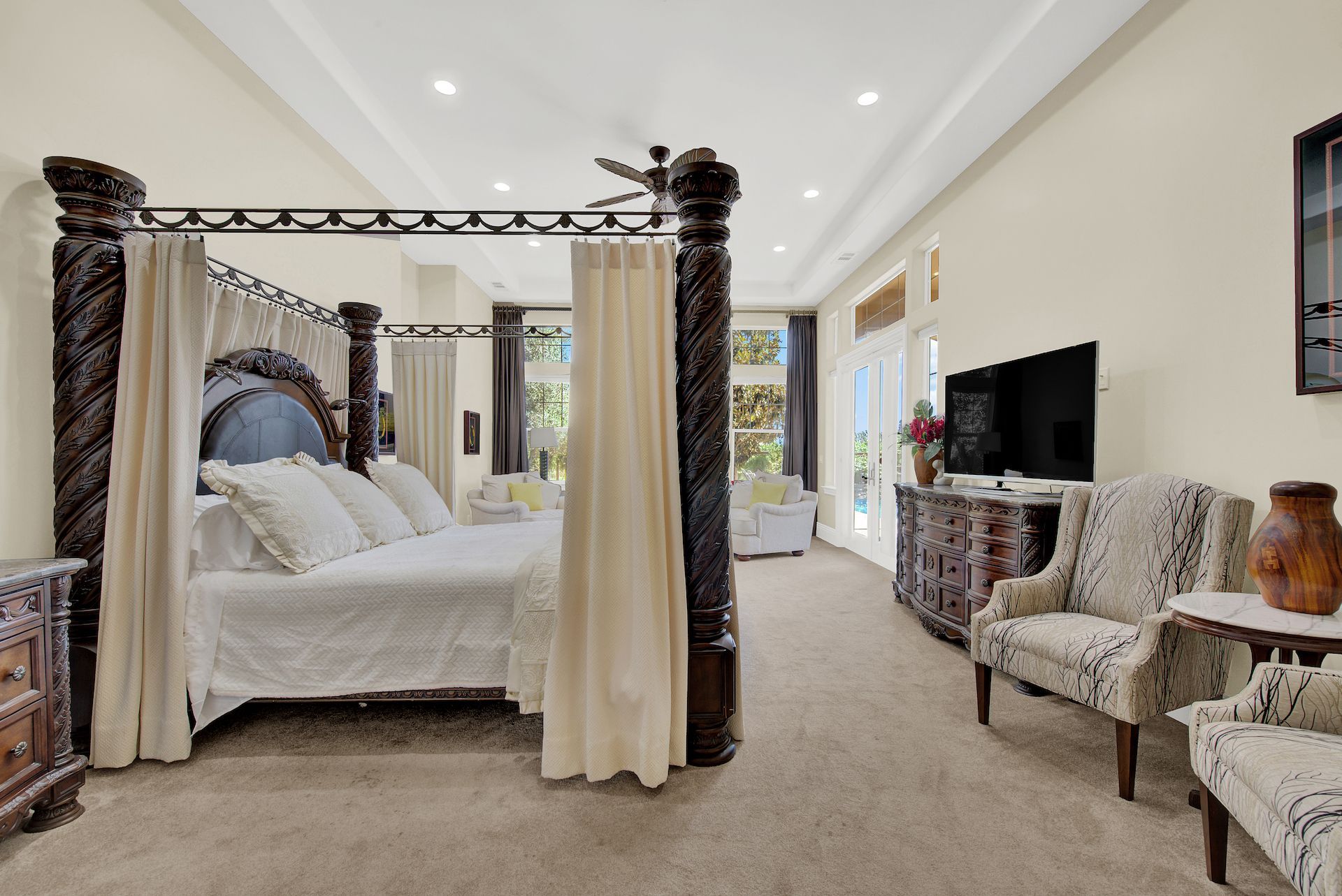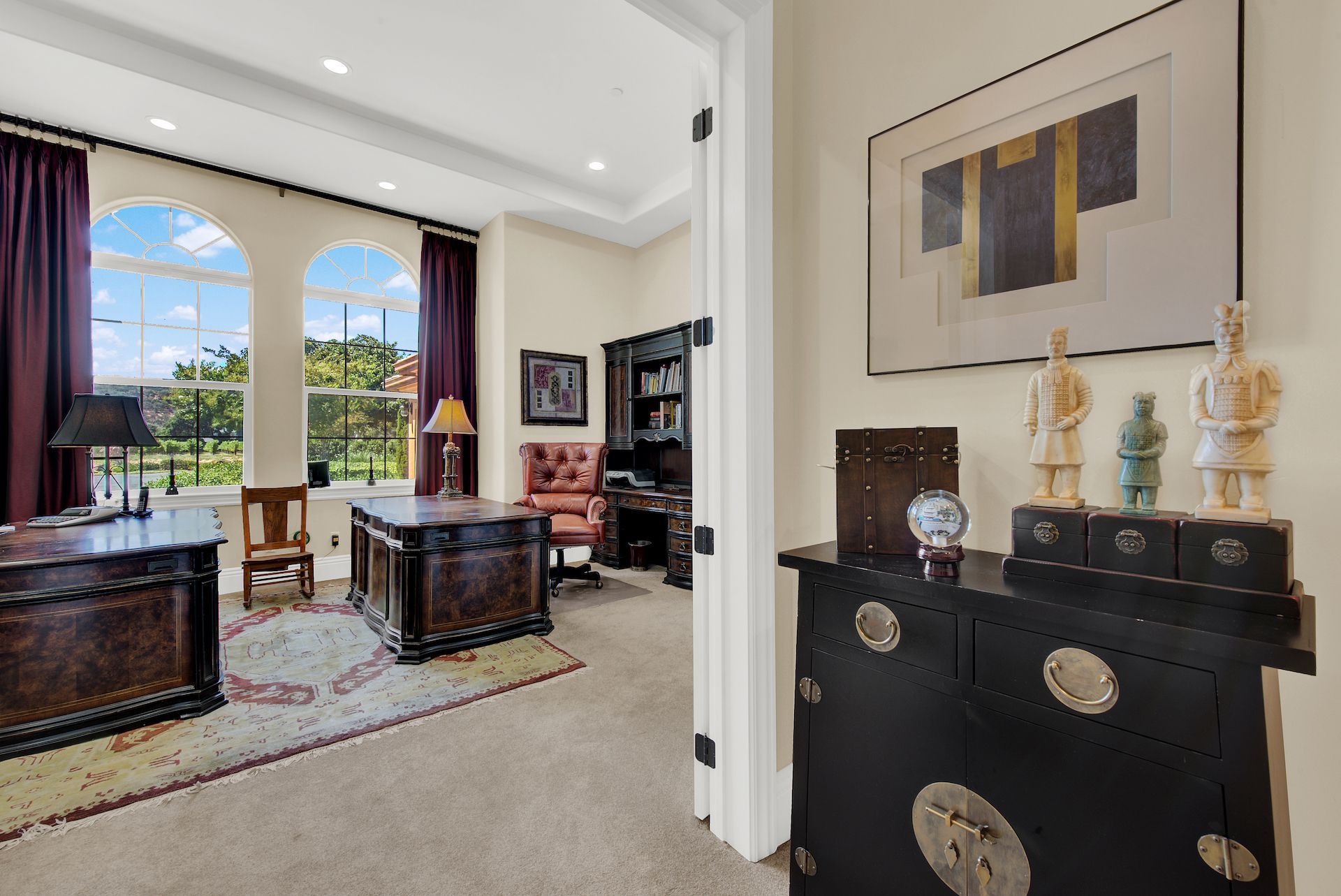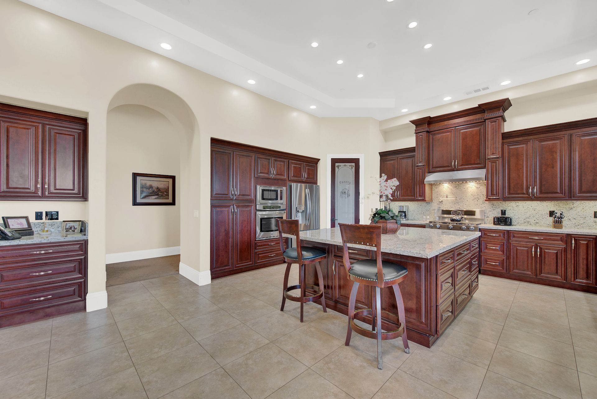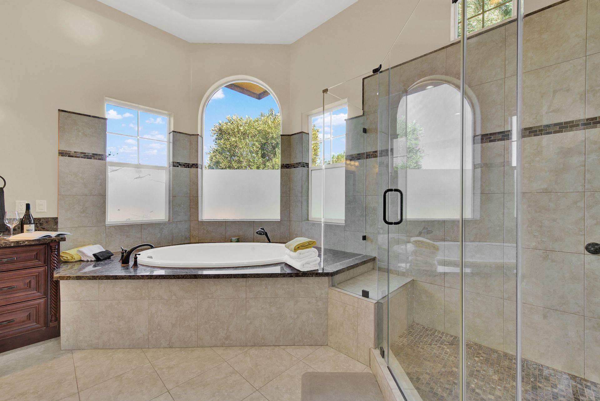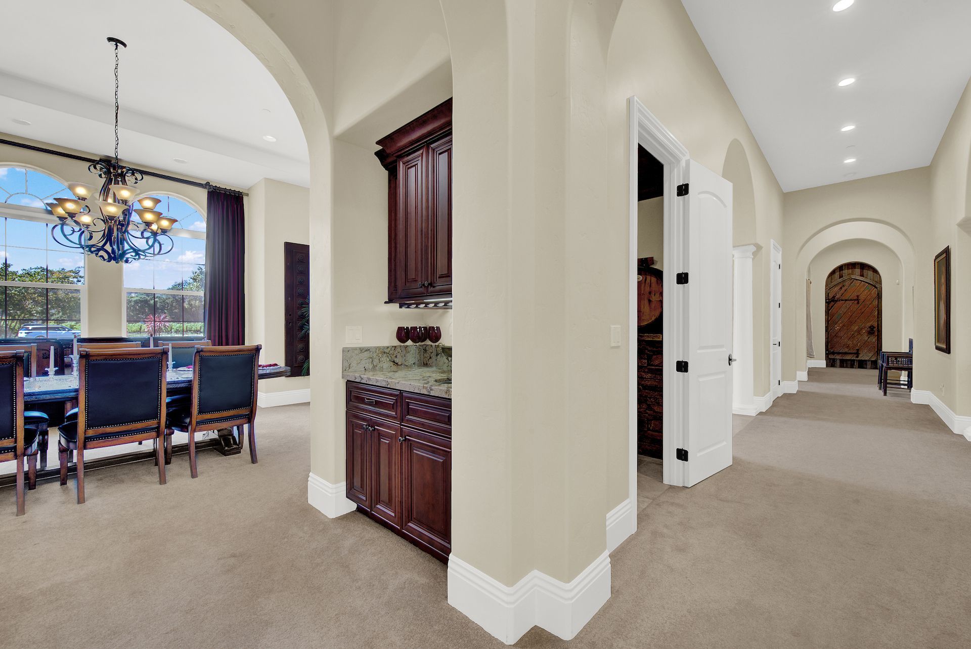 Wake up on vacation everyday on this 3.63 acre Mediterranean Villa. Surrounded by 3 acres of Cabernet grapes, beautiful olive trees and views of the surrounding hills. This home is a sprawling 6,100 single story that offers 4 bedrooms all with ensuites. The Primary bedroom is extra special overlooking both the vineyards and swimming pool, with a cozy fireplace and sitting area. The cathedral ceilings and tall windows bring in the natural light. A media/game room is perfect for indoor entertaining, while the outside swimming pool and jacuzzi make for great gatherings with friends and family. Working from home is a treat with dual working areas and views of the vineyards lining the gated entrance to the property. Invite friends for a weekend of wine tasting at Caymus Suisun, 360 Vineyards or a car show and tasting at the recently opened Bally Keal Estate. Suisun Valley is an emerging destination